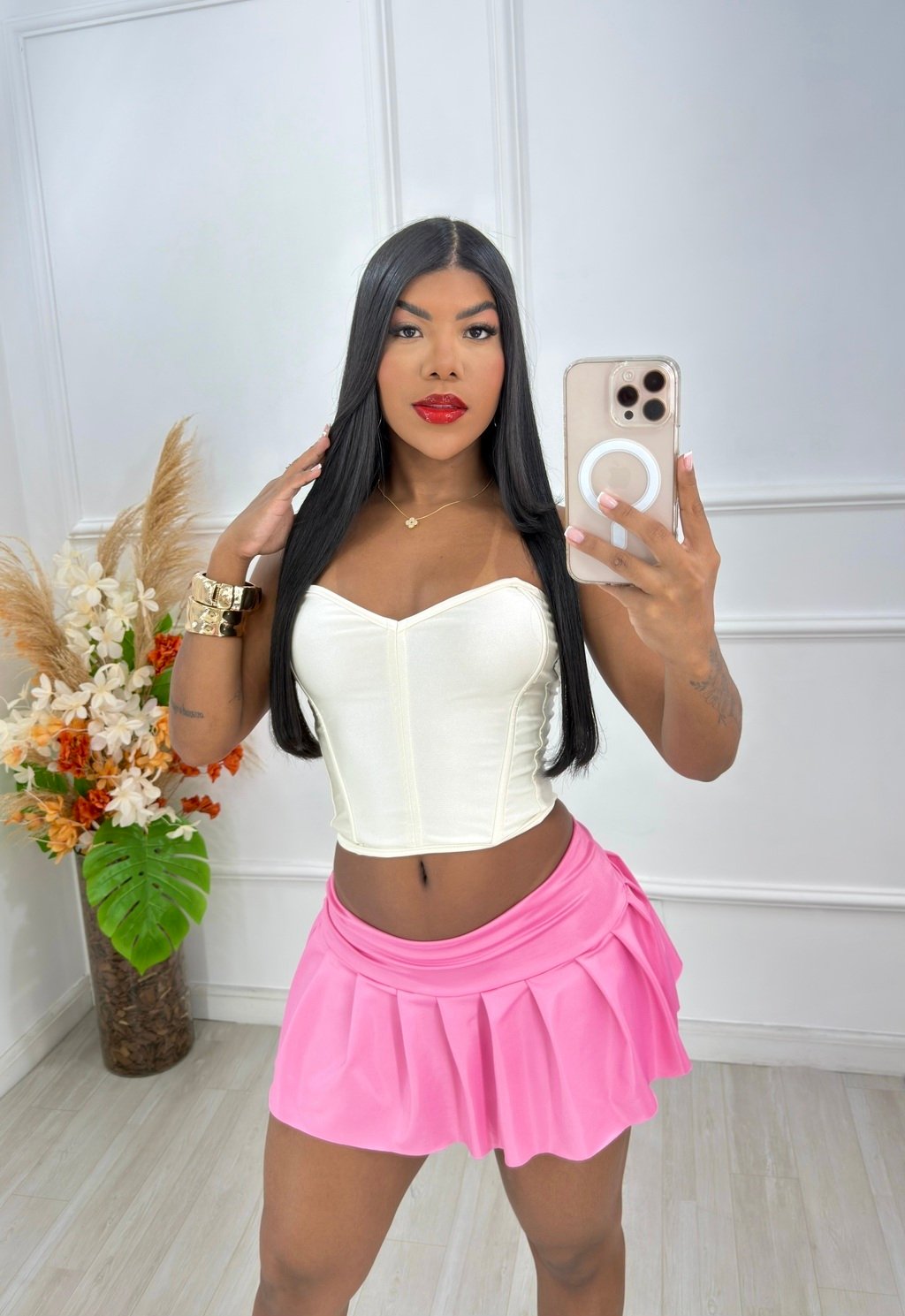 ✨ Conheça o SHORT SAIA PLISSADO EM CIRRÊ ACETINADO – Design Exclusivo e Qualidade Superior ✨